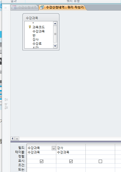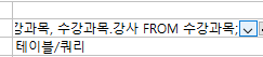 수강과목 개체를 보면 동일한 수강과목이 있습니다. 1번그림을 참조하여 지정해야 하는데 group by절을 사용하지 않으면 그림의 내용이 달라집니다. 이 절을 사용하여 동일한 것은 하나로 묶으셔야 합니다.