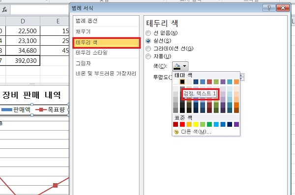 범례 테두리 '검정 텍스트 1' 이거 어디에 있어요