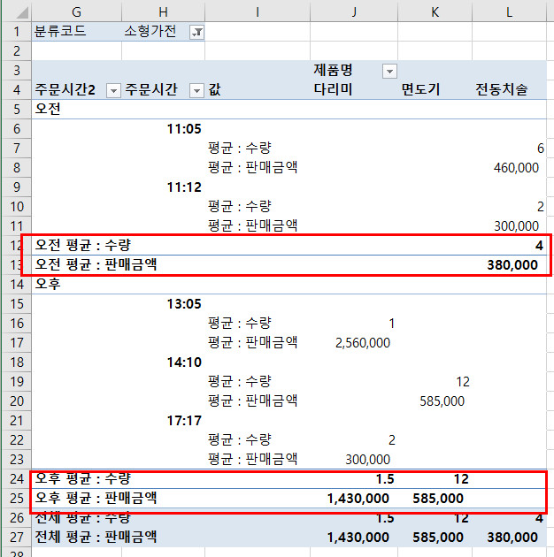 피벗에서 그룹하단에 각 행들의 합을 표시할 때 (이것이 피벗의 부분합 아닌가요?)