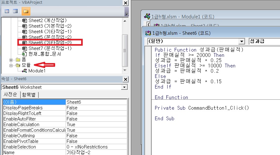 모듈 추가한 후 코드를 붙여넣기 하고 다시 확인 해 보세요.