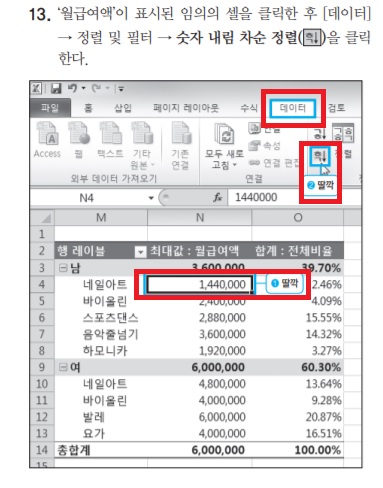 아래 그림과 같이 선택한 후 정렬을 하셨나요?