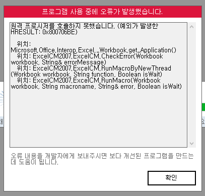 0x80076be 오류는 윈도우 환경 문제로 비쥬얼 베이직 쪽에서 오류가 발생한 것으로 보여집니다.