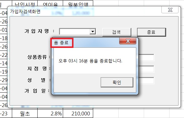 기출 01이나 02나 둘 다 메시지 표시 후 폼이 종료되도록 설정하는 문제인데,