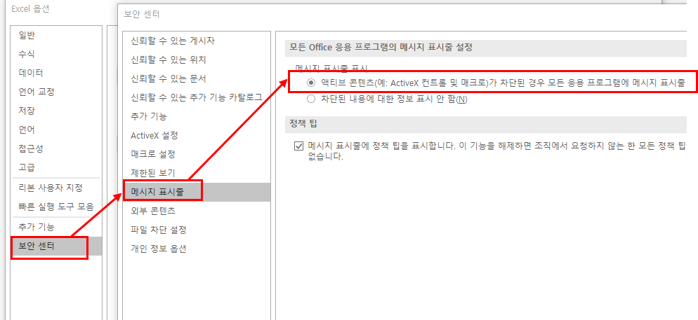 매크로 보안 해제 어떻게 해결 해야 하나요?