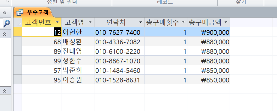 시험대비자료 19년 엑세스 E형 문제4번-01 <우수고객>쿼리 질문