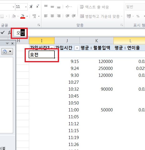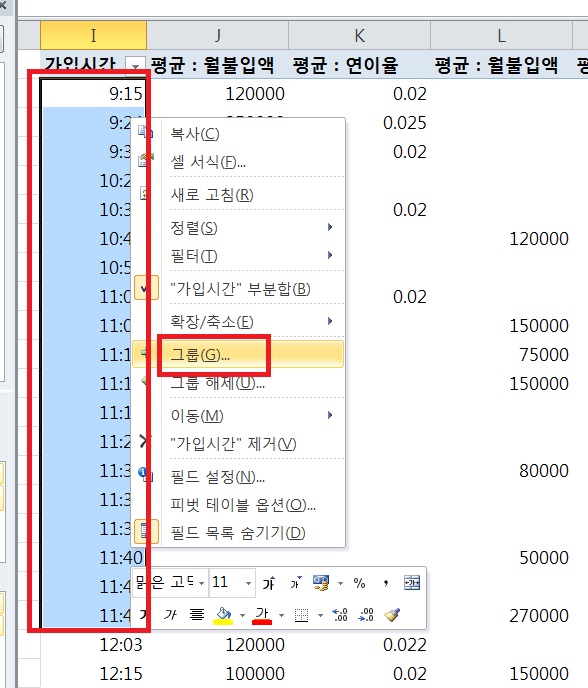 오전에 해당하는 범위를 설정한 후 그룹을 지정합니다.