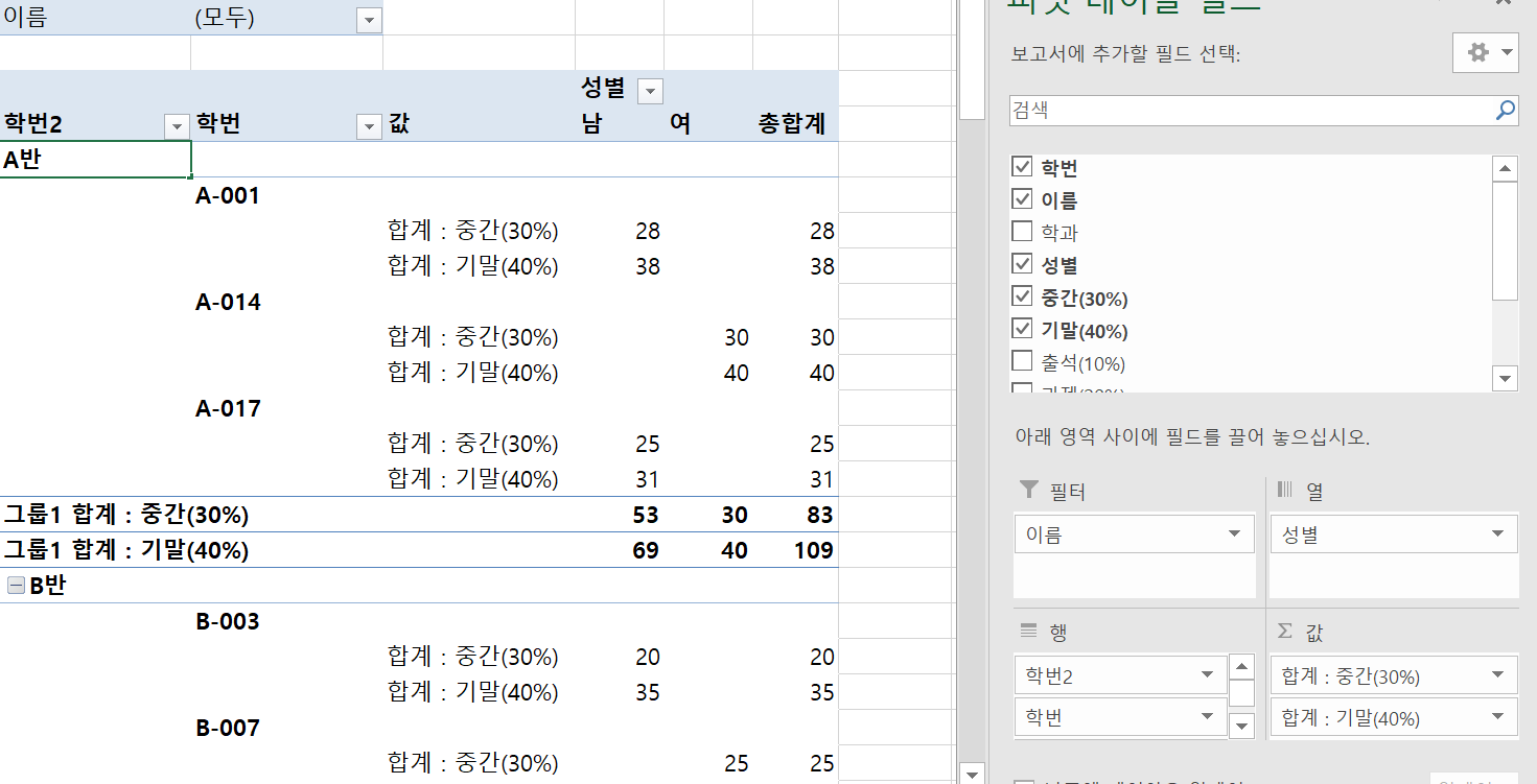 그룹으로 지정하니 학번2가 생겼습니다.