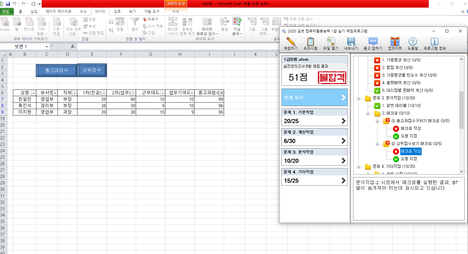 뭐가 틀린건지 모르겠습니다. 매크로 두부분이 틀렸던데 왜그런걸까요? 지정도 잘하고 했는데 뭐가 문제인가요?