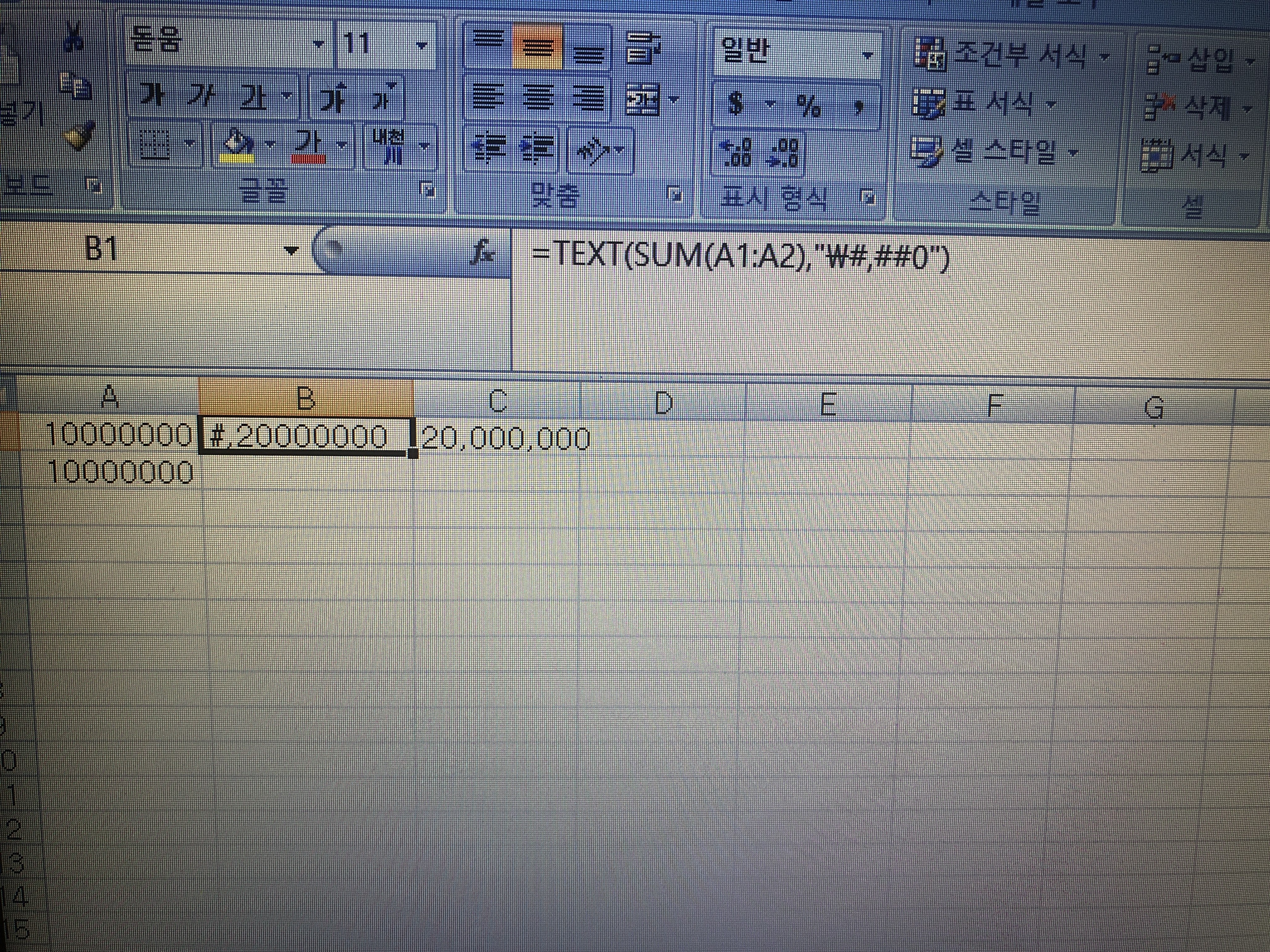 ₩#,##0을 사용해서 ₩2,000,000을 표현하고싶은데
