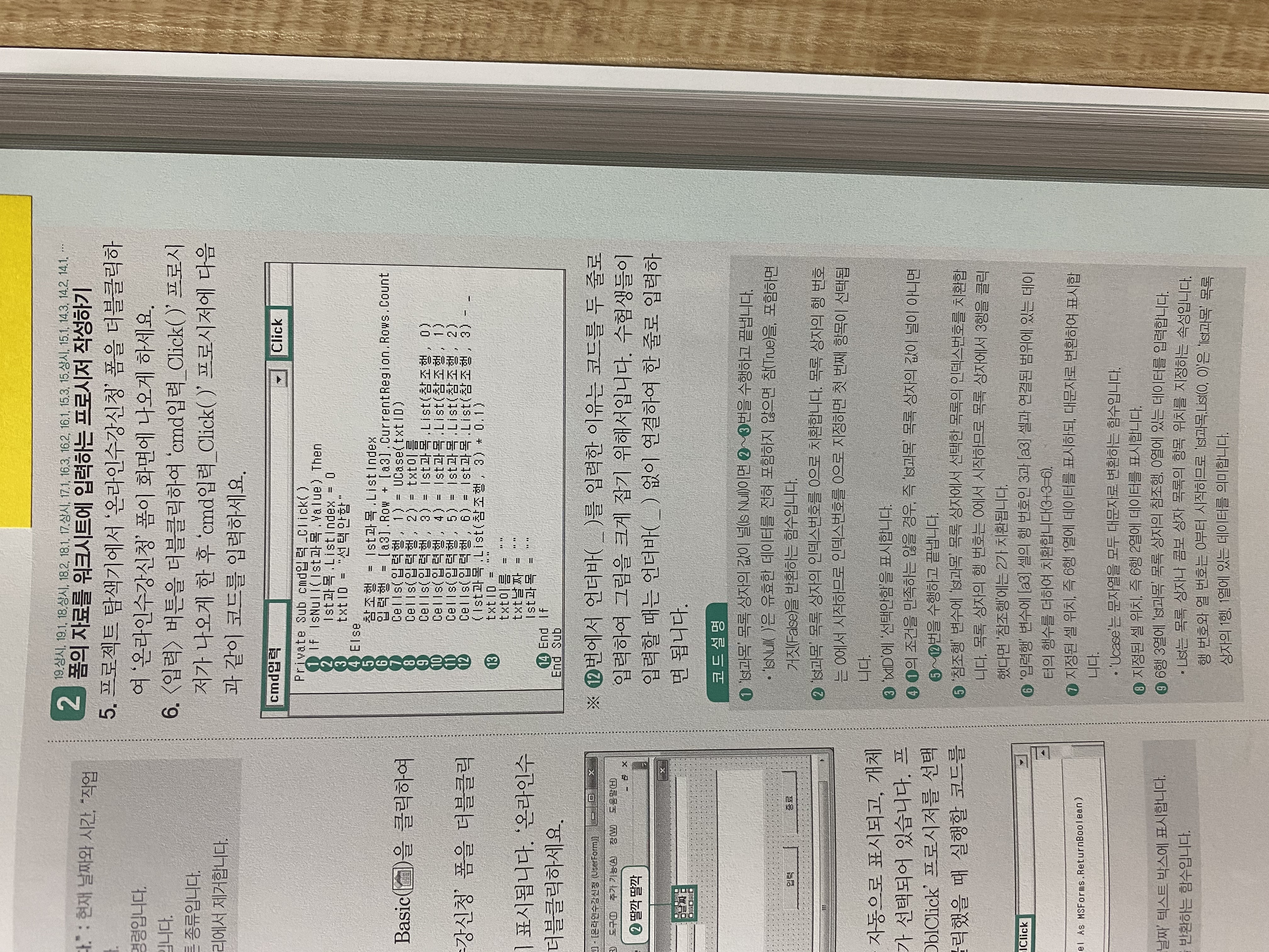 2. 폼의 자료를 워크시트에 입력하는 프로시저 작성하기 부분에서 작은 동그라미 5번에 "참조행 = lst과목.listindex" 이 부분이 이해가 가지 않아 뒤의 내용을 이어갈 수가 없습니다.