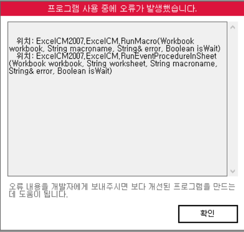 문의하신 오류는 윈도우 환경 문제로 비쥬얼 베이직 쪽에서 오류가 발생한 것으로 보여집니다.