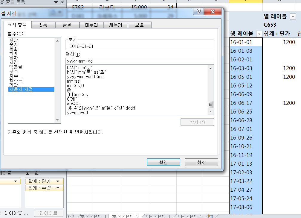 피벗테이블 그룹화된 날짜표시형식을 yy-mm-dd >>> yyyy-mm-dd 형식으로 표시하려고 합니다.