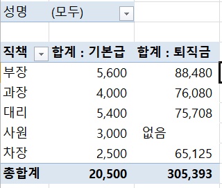 제가 직접 작성해보니까 아래 그림처럼 부장-과장-대리-사원-차장 순으로 작성되었습니다.