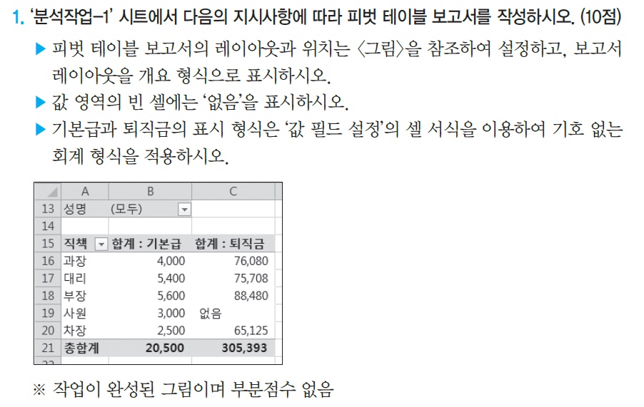엑셀 실전모의고사 I형 (문제 3-1번 )