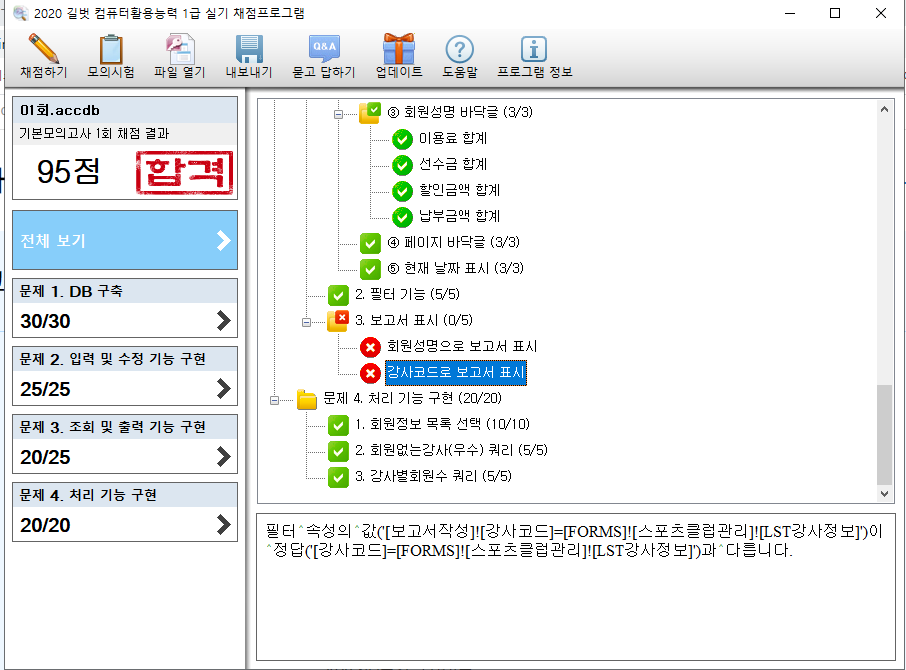 결과가 맞게 나오면 실제 시험에서는 정답 처리됩니다.