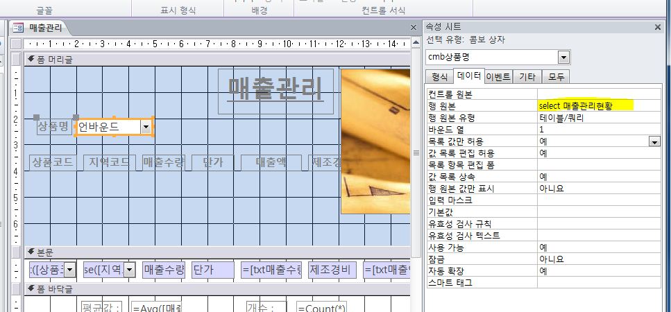 네. 위 그림 . . . 누르면 쿼리 디자인 창이 나옵니다. 필요한 필드를 아래쪽으로 드래그하여 가져다 놓으면 됩니다.