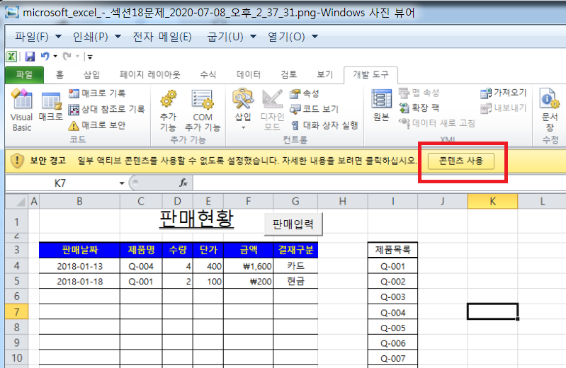 아래 그림에서 콘텐츠사용을 눌러야 합니다.
