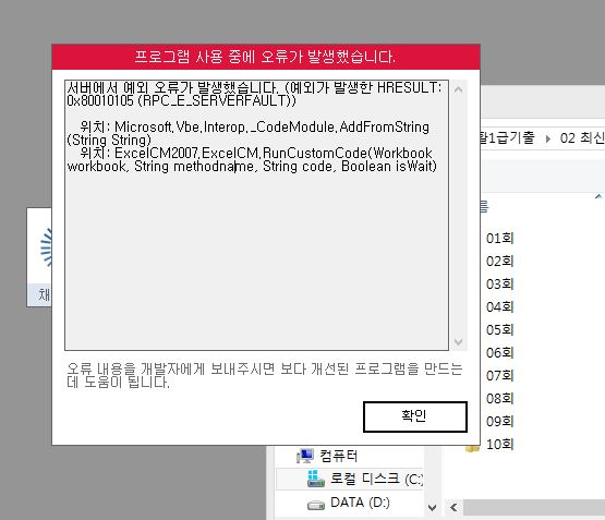 문의하신 오류는 채점 중 오피스를 종료거나 조작하는 경우 발생할 수 있는 오류입니다.