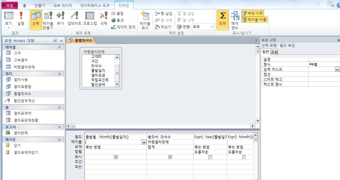 출발월 필드를 클릭한 상태인 것이죠. 맞게 하신것 같아요. 다시 한번 해보시고 안되시면 작성한 액세스 파일 자체를 올려주세요.