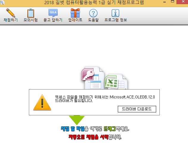 액세스를 채점하려고하는데 첨부사진과 같이 계속 이 오류메세지가 뜨네요.