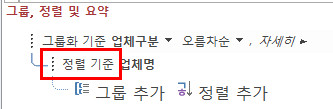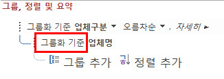 아래 그림을 보면 그룹화 기준을 업체명으로 했는데, 그룹화 기준이 아니라 정렬 기준을 업체명으로 해야 합니다. 업체명으로 그룹화한 것을 삭제한 후 업체명으로 정렬되게 하세요. 그러면 순번이 제대로 표시됩니다.
