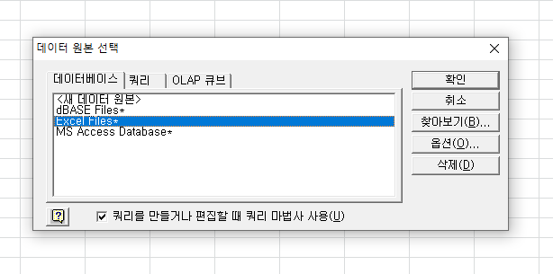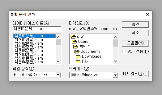 섹션 문제는 외부데이터 가져오기에서 열면 안되고