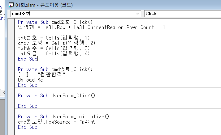 기본모의고사 1회 문제4-2 <종료>버튼 클릭 시