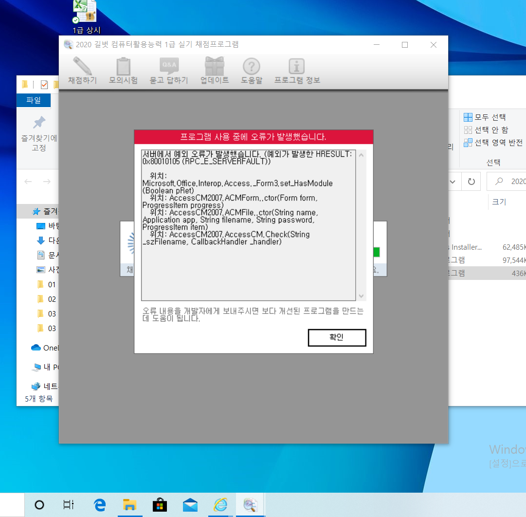 문의하신 오류는 채점 중 오피스를 종료거나 조작하는 경우 발생할 수 있는 오류입니다.