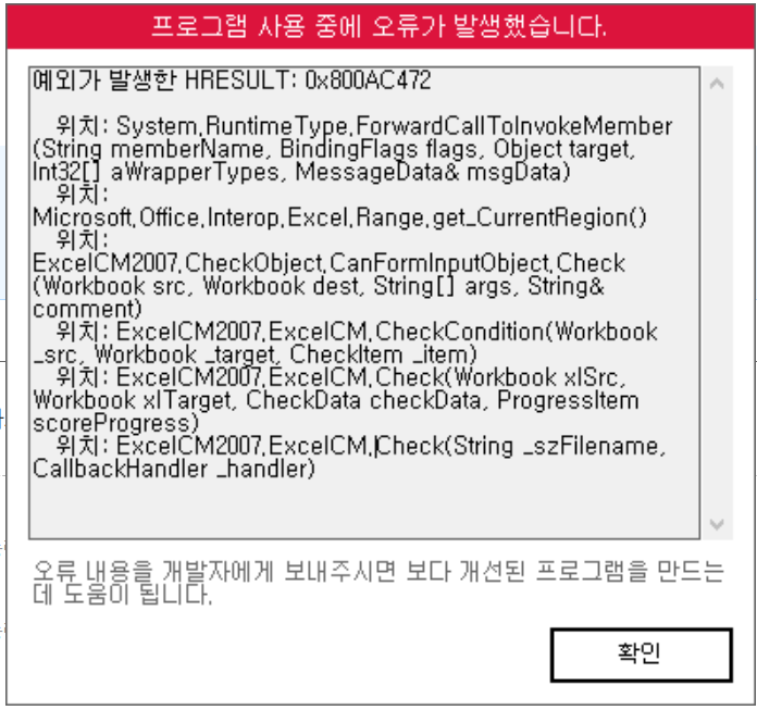 문의하신 오류는 오피스 프로그램의 손상으로 인해 발생하는 오류입니다.