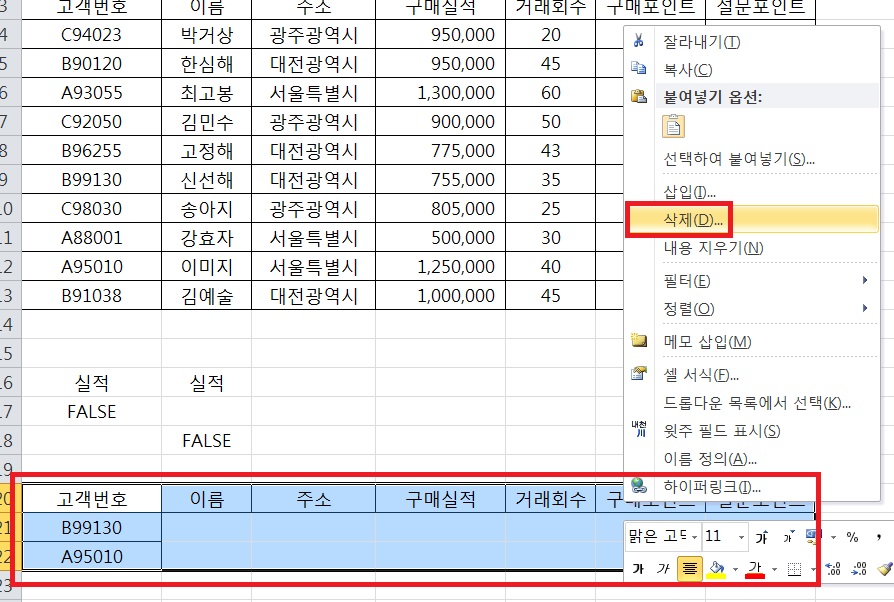 책 기출문제 따라하기 에서는 복사 위치를 $A$20으로 하라고 나와 있는데요, 이렇게 지정을 하니 첨부 파일처럼 고객 번호만 복사가 됩니다.