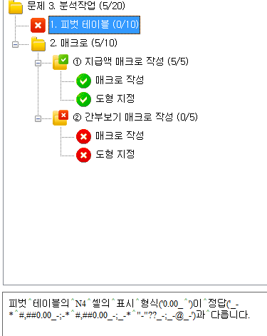 피벗테이블 문제를 나온대로 정확히 풀었는데 겉모습은 완전똑같은데 안에 함수가 달라서 틀린듯한걸로 채점이 되었습니다