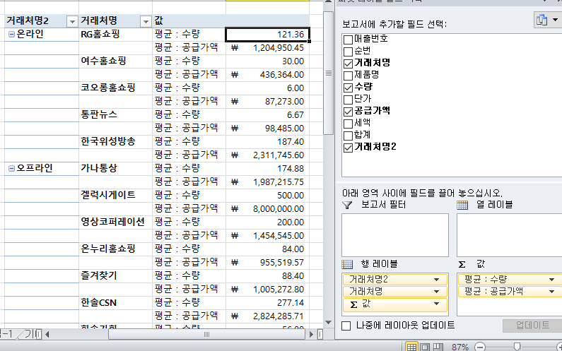 피벗 테이블 채점 결과