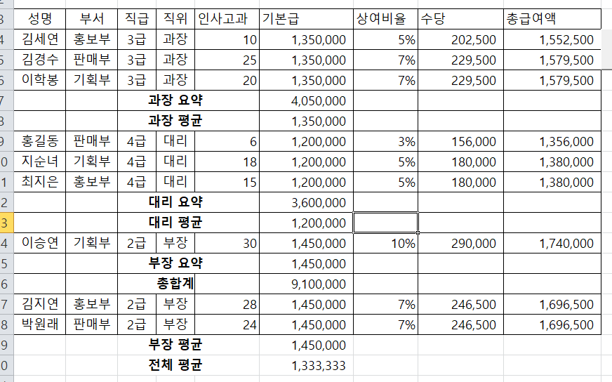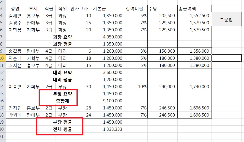 검산을 위해서 부분합을 해제하고 매크로를 실행하면 부장합계가 이상하게 되는데 이게 왜 그런건가요ㅠㅠ?