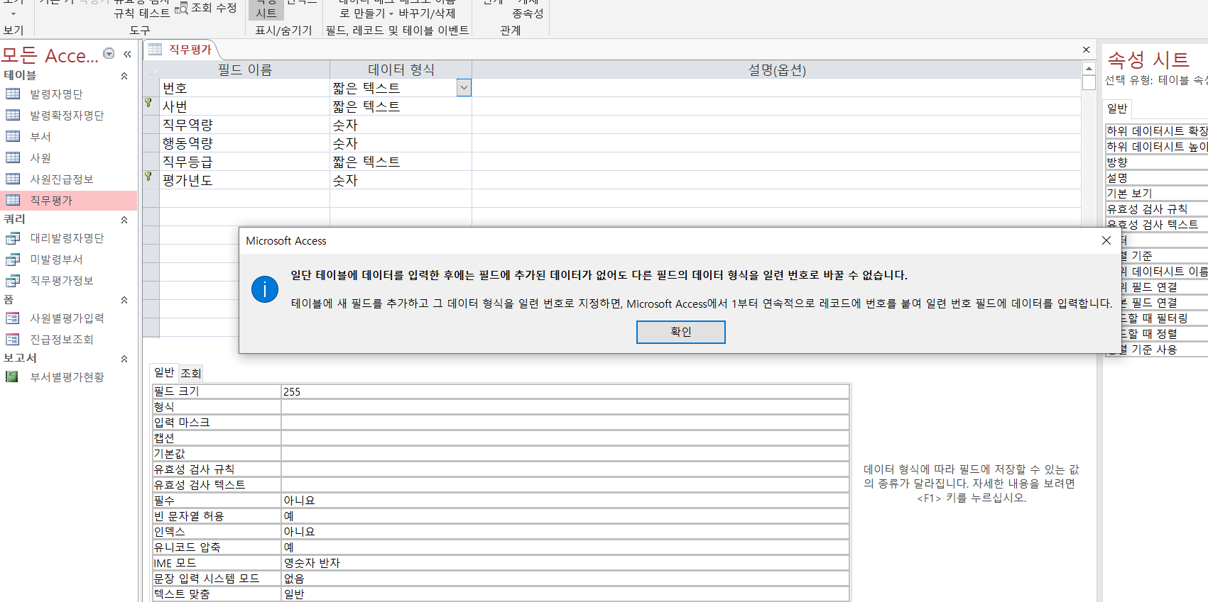 작성한 액세스 파일 자체를 올려주세요. 파일을 봐야 할 것 같습니다.