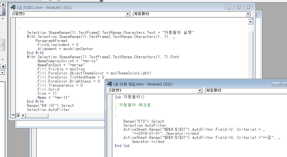 2. 자동필터 매크로 내용을 확인 해 보니 정확한 이유는 모르겠지만 너무 복잡하네요.
