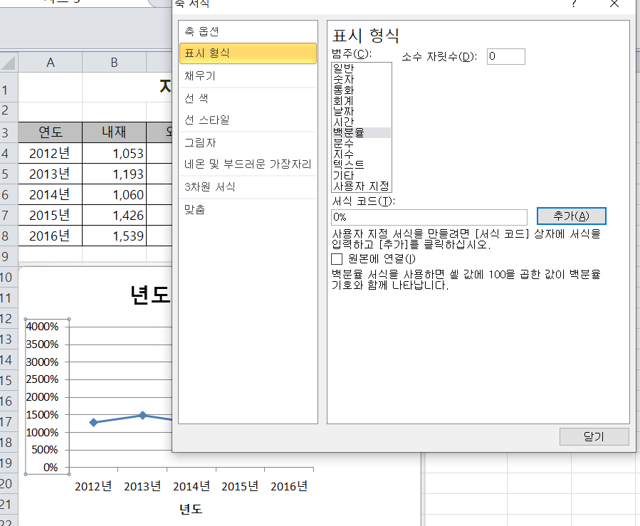 세로 축의 값을 해설처럼0%하면 아래 그림처럼나오는데 어떻게해야하는건가요?ㅜ