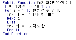 a가 3일때 실행하면 fn기타에 입력되어 있던 "■■"에 "■"를 연결하여 fn기타에 저장하므로 "■■■"가 됩니다.