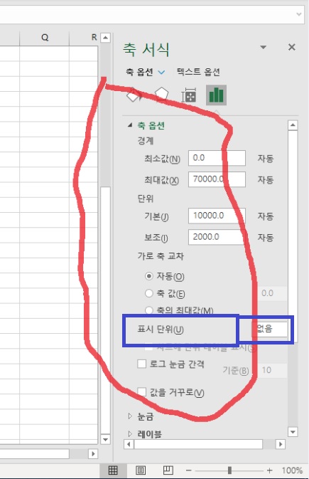 천단위로 축표시라는 메뉴 자체가 보이질 않는데요..