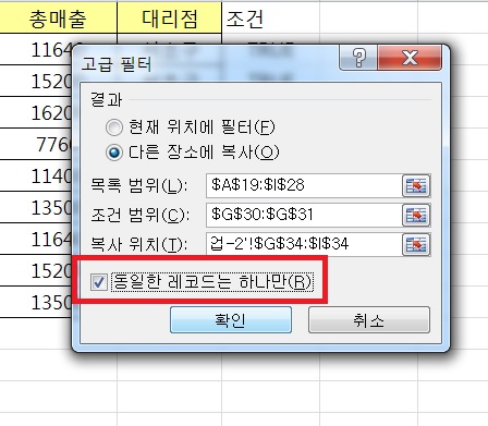 고급필터 문제에서 제품코드가 "A"나 "B"로 끝나는 데이터를 구하라고 되어 있는데