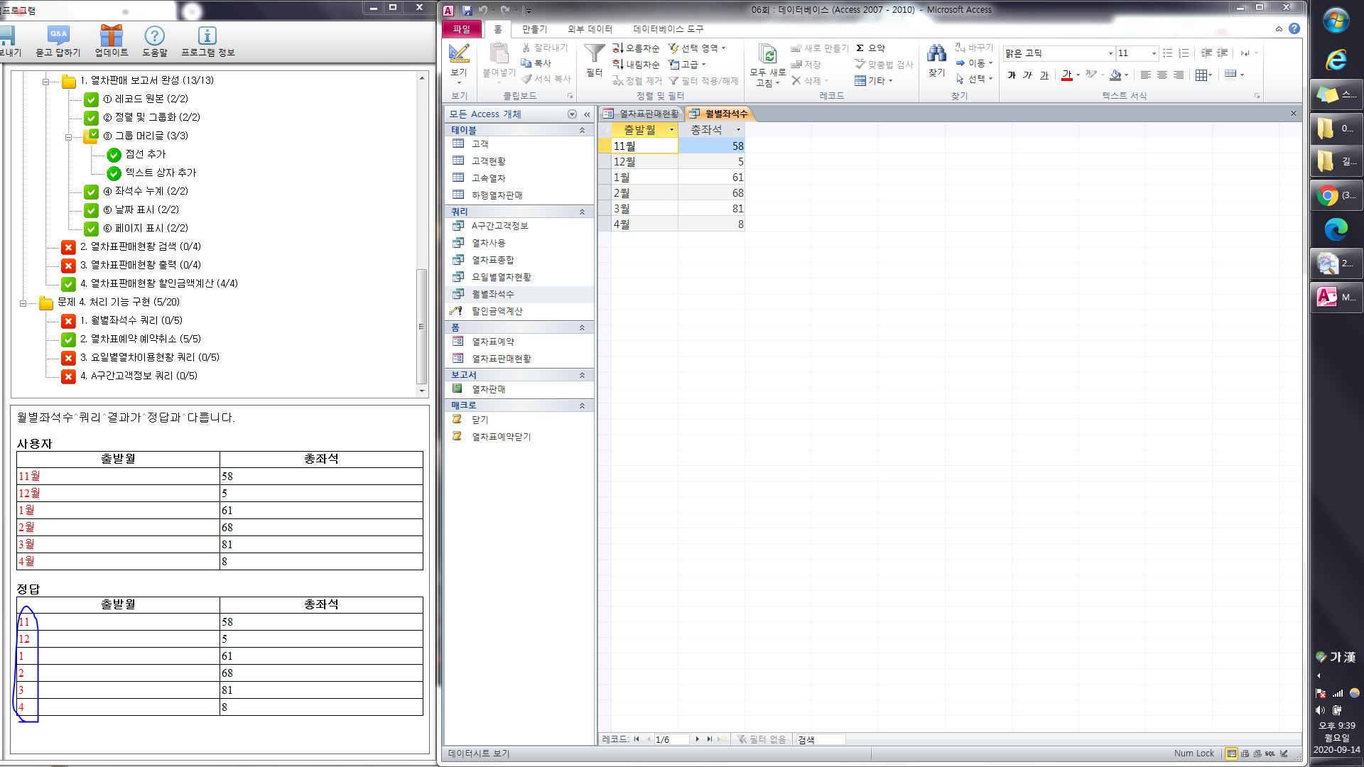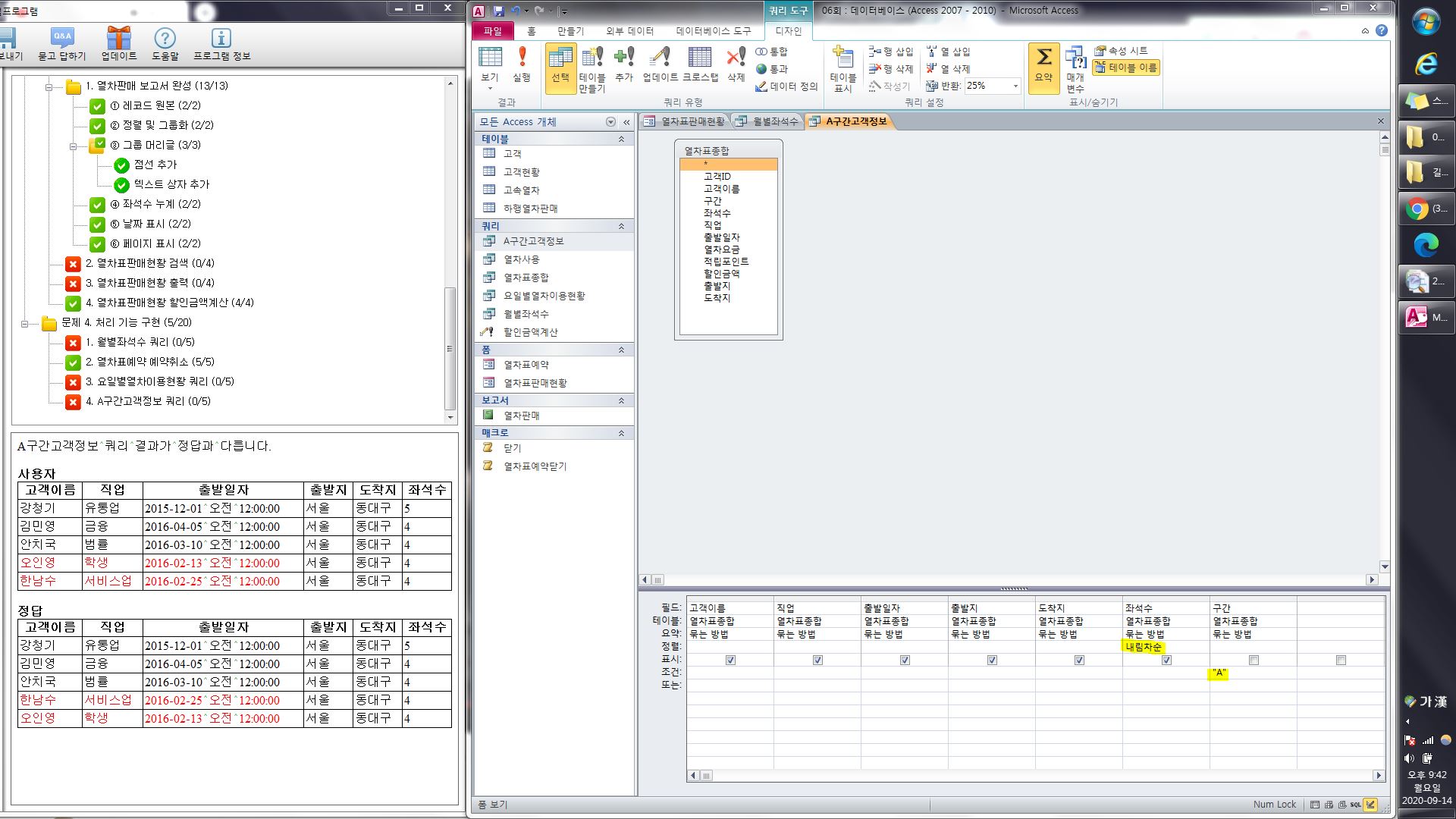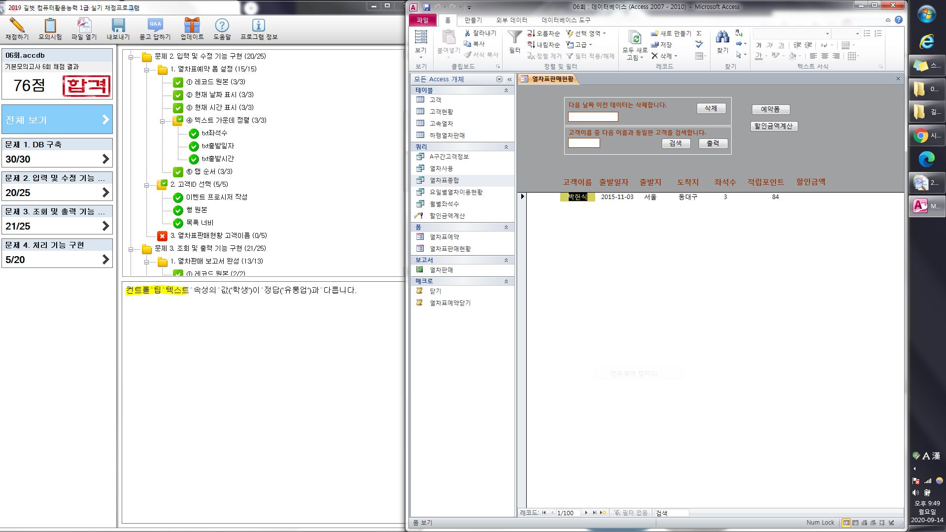 제 파일을 오픈했을 때 열차표판매현황 폼의 본문에 나온 사람(박현수, 학생)이 채점프로그램(강정기, 유통업)과 달라 감점이 되었는데요.