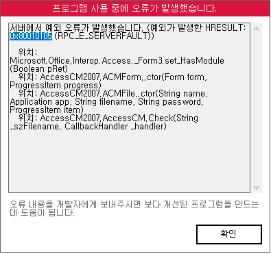 문의하신 오류는 채점 중 오피스를 종료거나 조작하는 경우 발생할 수 있는 오류입니다.