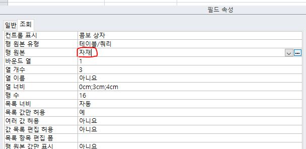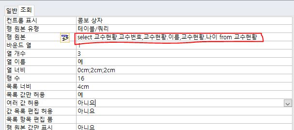 214페이지의 문제 1-3의 경우, 조회 속성 설정 시 행원본에 테이블 이름만 설정하고 따로 select문을 쓰지 않았는데