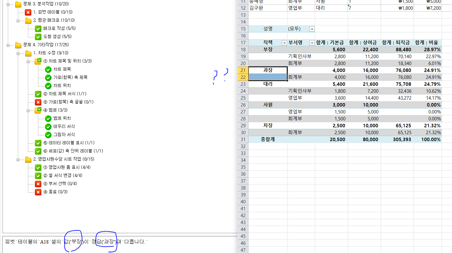 피벗테이블에 직책이 정답과 다르게 나오는데