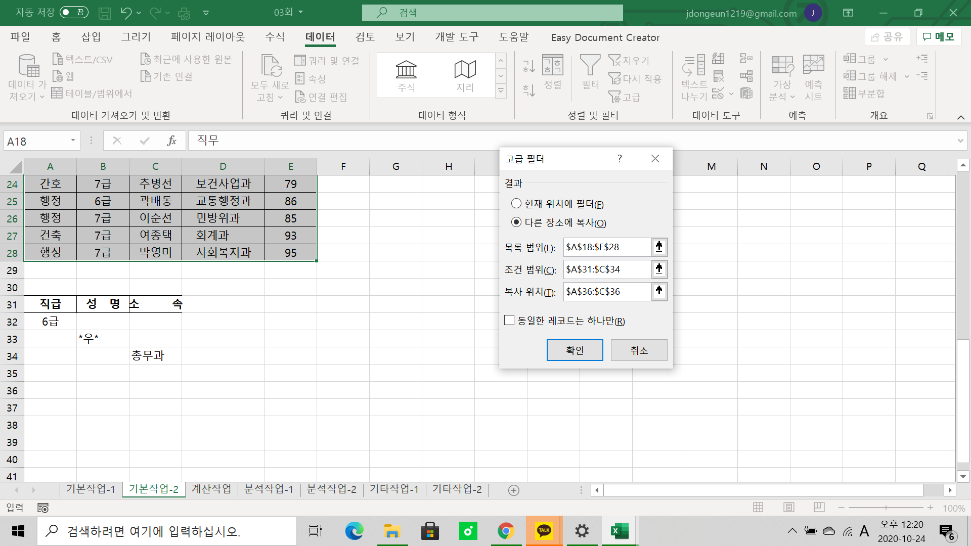 1권 기본모의고사 3회 기본작업 3번 고급필터