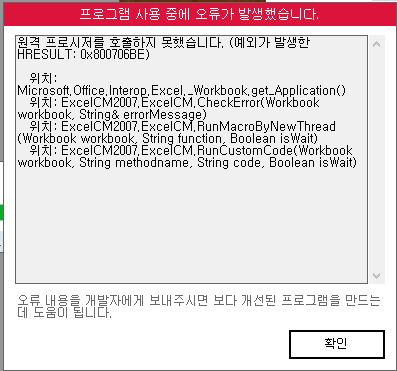 0x80076be 오류는 윈도우 환경 문제로 비쥬얼 베이직 쪽에서 오류가 발생한 것으로 보여집니다.