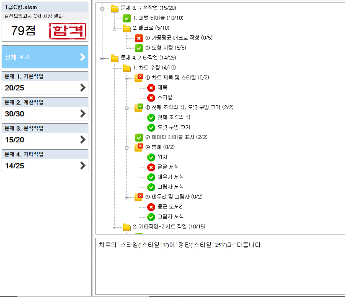 문제에서 차트 스타일3을 하라고 해서 했는데 이런 채점 결과가 뜹니다. 버전 차이 때문일까요? 신경쓰지 않아도 되는 건가요?