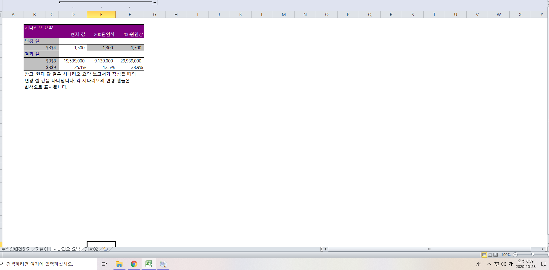버스요금 요약까지는 되는데 요약하고 해설대로 기출2시트에서 시나리오관리자로 들어가서 인하에 표시를 눌러도 아무반응이 없습니다.