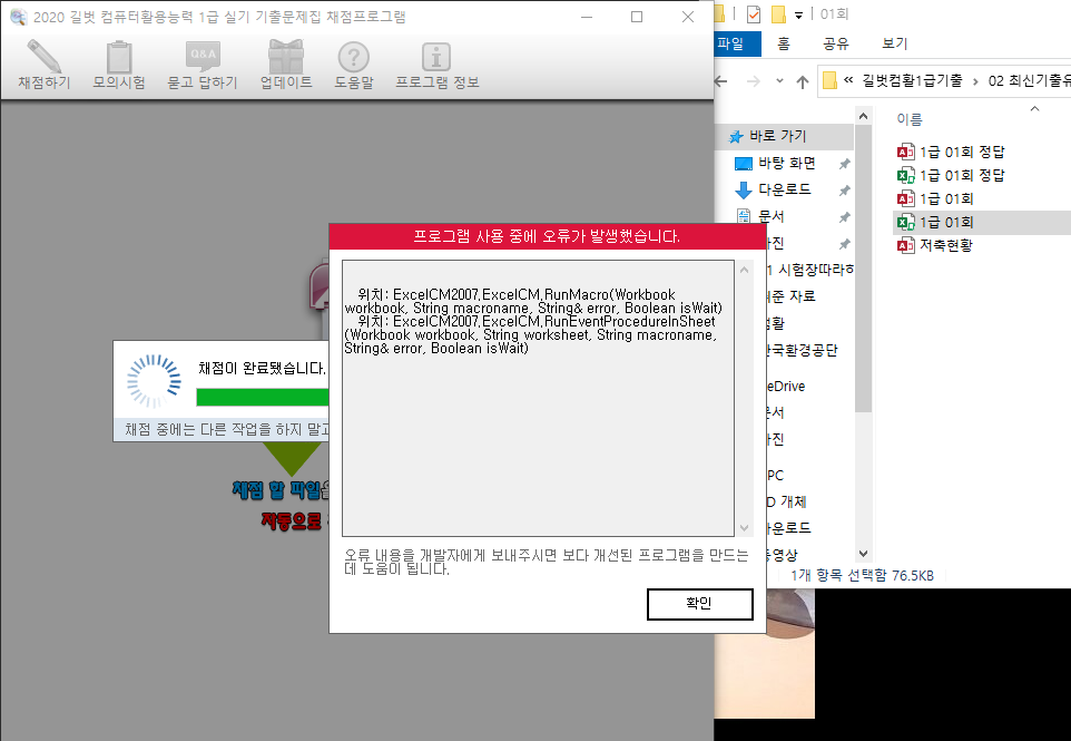 해당 오류도 윈도우 환경 문제로 비쥬얼 베이직 쪽에서 오류가 발생한 것으로 보여집니다.