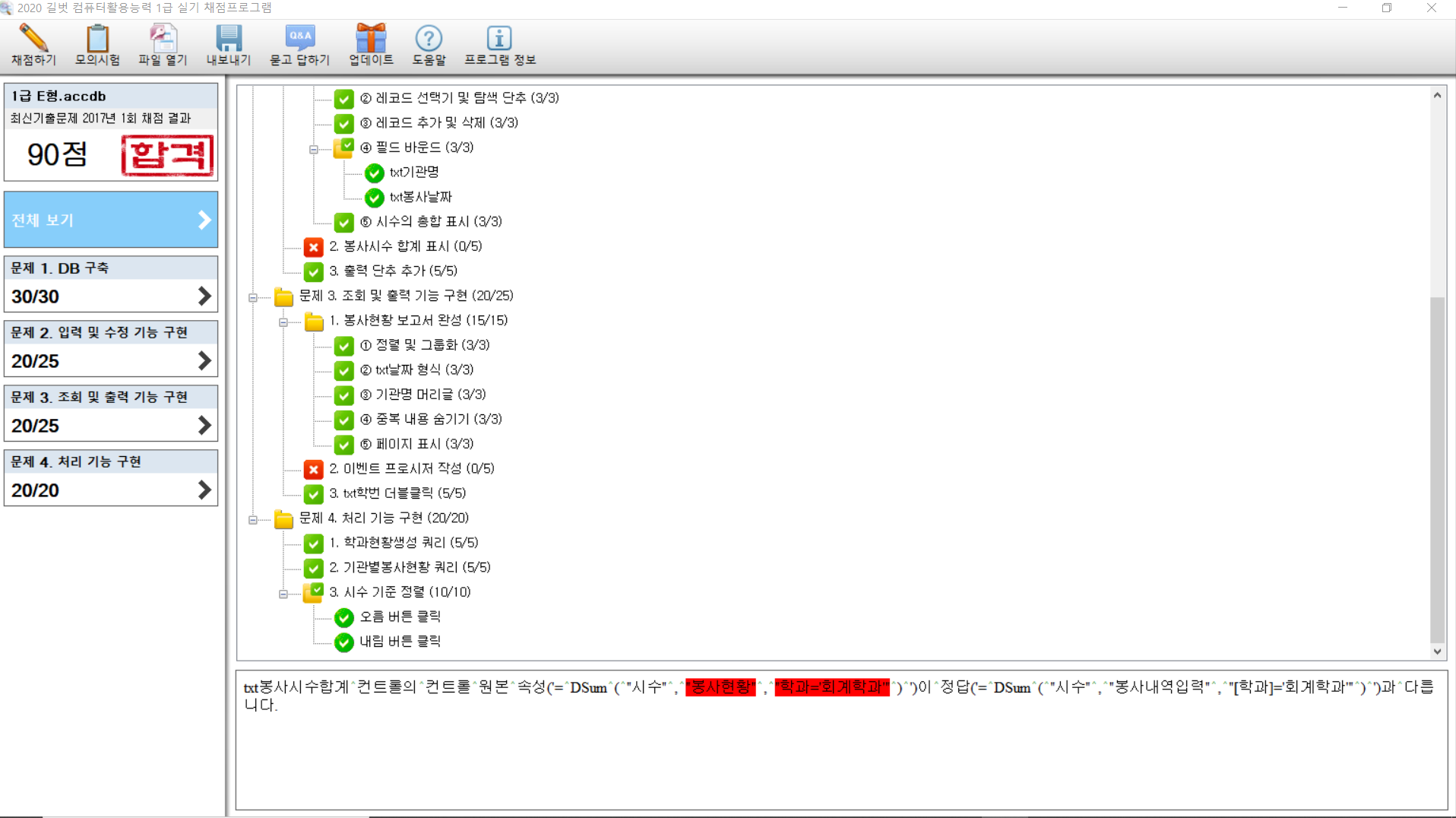 저희 채점 프로그램은 정답 파일과만 비교하여 조금이라도 다르면 감점시킵니다. 하지만 실제 시험에서는 자동 채점과 수동채점을 병행하므로 실제 시험에서는 정답 처리됩니다.