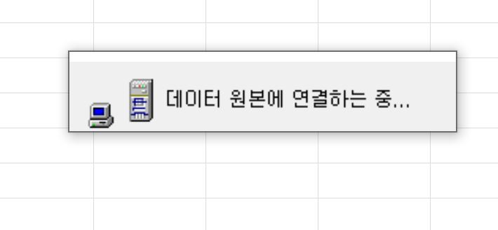 이후 첨부파일과 같이 "데이터 원본에 연결하는 중"이라는 메시지가 뜨고 사라진 후 데이터베이스 선택하는 창이(대화상자가) 아예 뜨지 않습니다.(메시지 박스 다 사라지고 처음 상태로 돌아가버림)